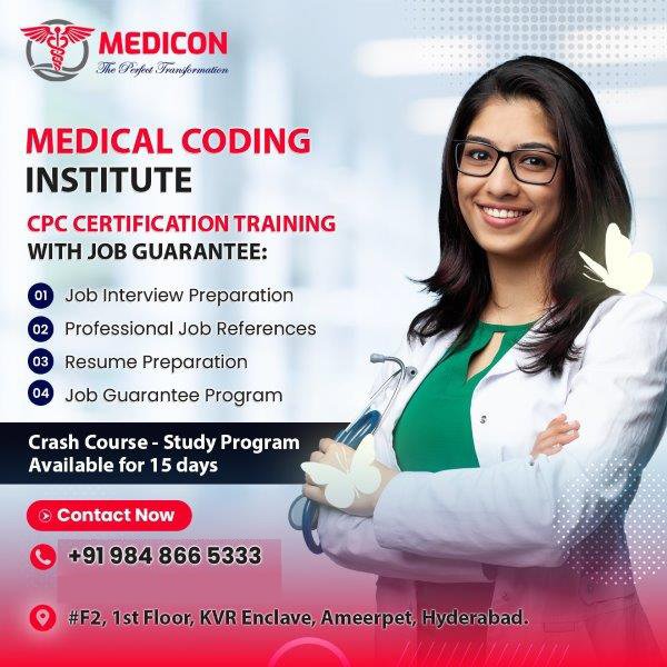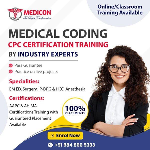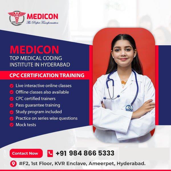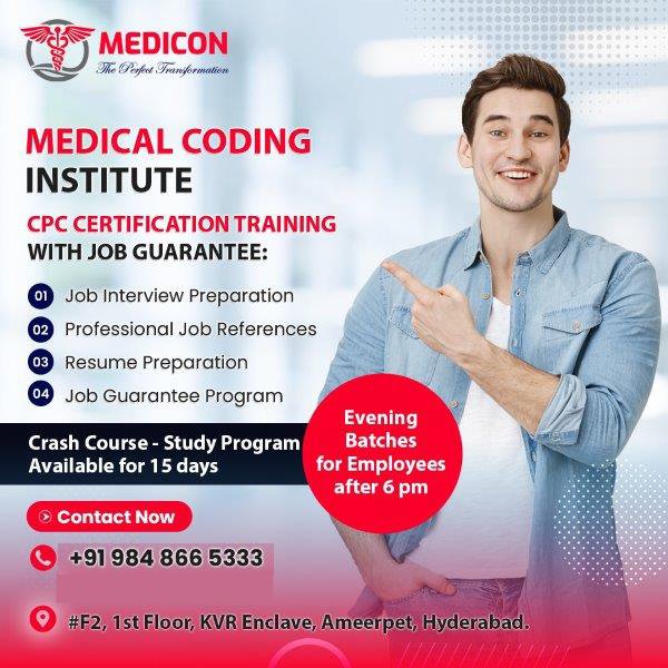 For those aiming to earn their Certified Professional Coder (CPC) credential, MEDICON, the best medical coding training institute in Hyderabad, offers tailored preparation courses. The curriculum covers all the key areas of the CPC exam, including medical terminology, coding guidelines, and real-world case coding.